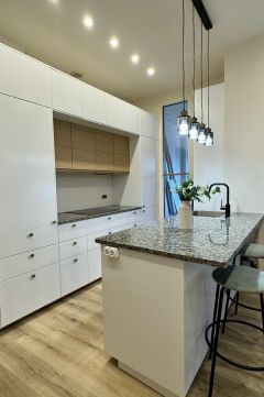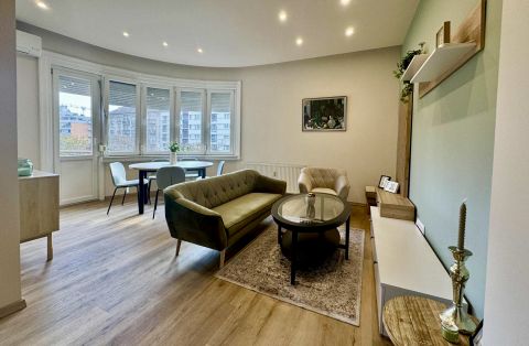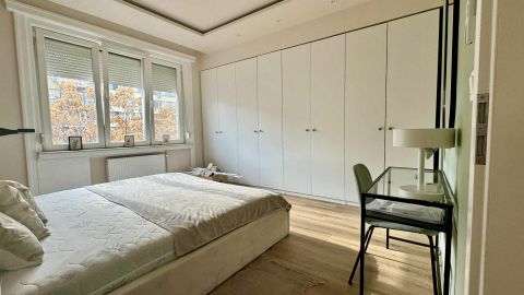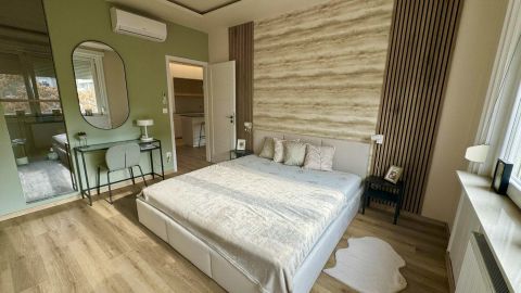 The apartment features completely renewed electrical wiring, flooring, and windows. The premium, fully equipped kitchen stands out with its elegant granite countertop, while the spacious open-plan livingdiningkitchen area is bright and refined. The master bedroom includes an overd built-in wardrobe for generous storage, and an additional empty room offers flexibilityperfect as a home office, guest room, or nursery. The bathroom provides a true luxury experience with both a bathtub and a walk-in shower. The apartment is air-conditioned and includes a separate utility room with a washing machine, as well as a 20 m² private storage space for maximum convenience.