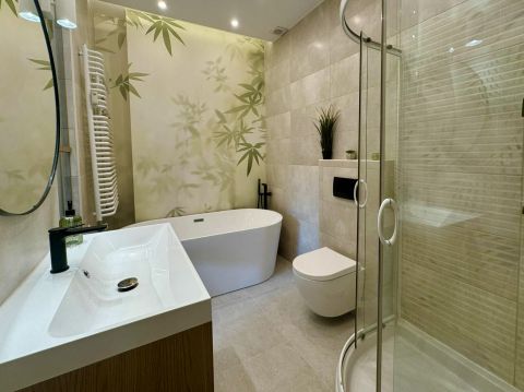 A lakásban minden vezeték, burkolat és nyílászáró vadiúj. A nappalikonyhaétkező egybenyitott tere tágas, világos és elegáns hangulatú, a konyhát pedig prémium gépekkel és látványos gránit munkalappal szerelték fel. A hálószobában egy óriási, beépített gardróbszekrény biztosít extra kényelmet. Emellett található egy különálló, üres szoba is, amely dolgozószobaként, vendégszobaként vagy gyerekszobaként is kialakítható. A fürdőszoba luxus felszereltségű: külön zuhanyzó és kád kapott helyet. A lakás klimatizált, és rendelkezik egy külön háztartási helyiséggel, ahol a mosógép számára kialakított rész is található. A bérlő kényelmét tovább növeli egy tágas, kb. 20 nm-es saját tároló is, amely ritka extrának számít a környéken