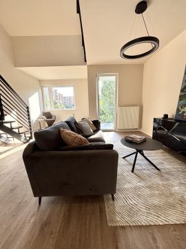 A tágas, világos nappali, a galériás felső szint és a 4 m²-es erkély együttese igazán egyedi térélményt kínál. A lakás délkeleti tájolásának és kertre néző adottságának köszönhetően csendes és napfényes.