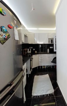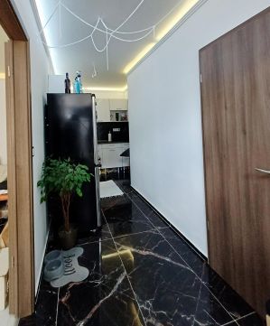 A lakás elosztása praktikus: egy tágas szoba, egy külön konyha, fürdőszoba és előszoba alkotják. A szoba világos és jól berendezhető.