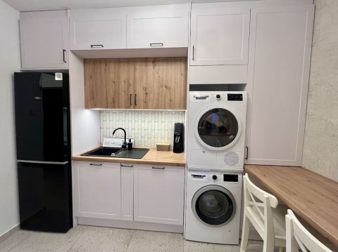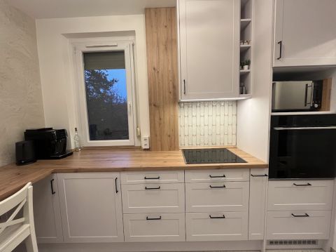 - teljesen gépesített konyha, egyedi gyártású, festett fa frontos konyhabútor, minőségi szerelvényekkel