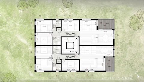 2.em. 5. 106 nm nettó, Nappali+3 szoba +8,4 erkély       (2 db. kocsibeálló+3,5 nm tároló)
