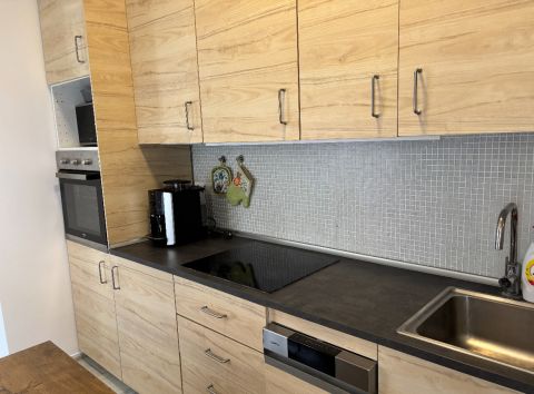 -A lakáshoz tartozik a teljes bútorzat is (Olasz bőrkanapé, beépített konyha, még a TV is)