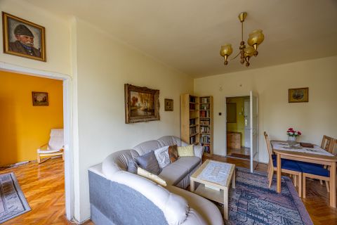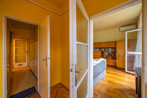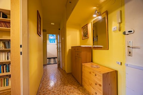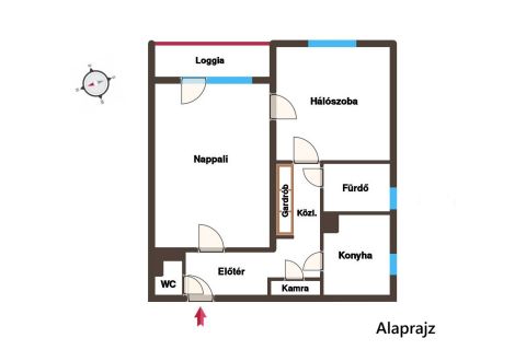 A lakás elosztása praktikus, hiszen körbejárható, akár különnyíló két szobásként is használható. 18 nm-es nappalink, közel négyzet alakú 12,57 nm-es hálószobánk, nagy konyhánk (5,1 nm), különnyíló WC, tágas előterünk, kamránk és rengeteg tárolási lehetőségünk van a közlekedőben.