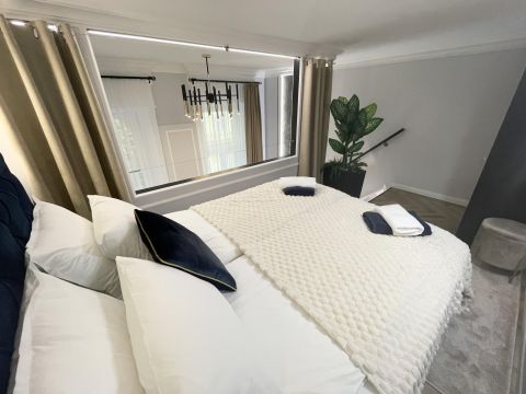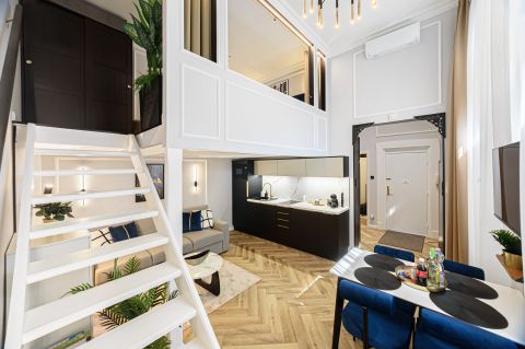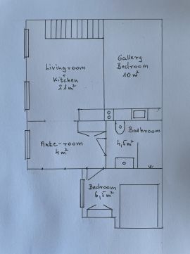 A kiváló térkihasználásnak köszönhetően 2 külön hálószoba (állógalériás háló+külön hálószoba), amerikai konyhás nappali, fürdőszoba és előszoba került kialakításra, ami többfős bérbeadásra is ideálissá teszi az ingatlant.