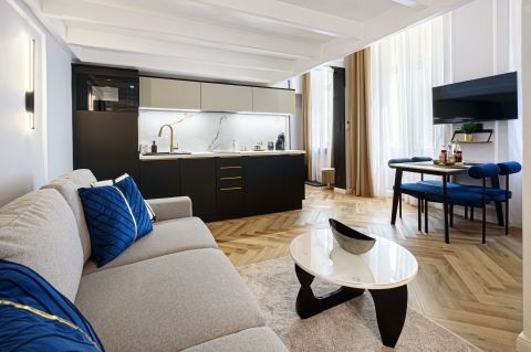VI. kerület szívében, hosszútávú bérbeadás szempontjából is kiemelkedő lokációban, kívül-belül szép állapotú liftes házban ELADÓ egy teljeskörűen felújított, állógalériás luxus lakás.