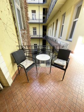 Az udvari fekvés csendes, nyugodt lakókörnyezetet biztosít, miközben a város kulturális és turisztikai központja pár lépésre található. A bejáratnál kialakított kis teraszrész tovább növeli a bérlői élményt és az ingatlan értékét.