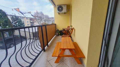 A lakáshoz egy 14 m²-es, belső udvarra néző erkély tartozik, amely ritka adottság belvárosi környezetben, csendes, nyugodt pihenést biztosít.