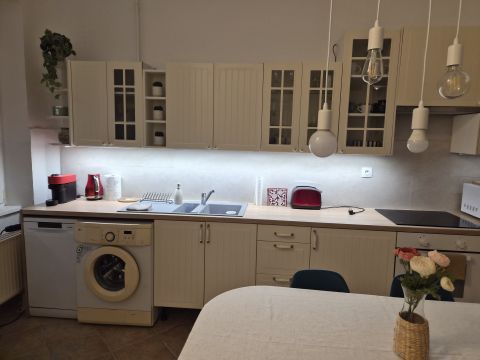 A lakás elrendezése rendkívül praktikus és élhető. Belépéskor egy tágas étkezőkonyha fogad, amely szép konyhabútorral és gépesítéssel felszerelt. Az ingatlan 2017-ben teljes körű felújításon esett át, melynek során megtörtént az ajtók és ablakok cseréje is.