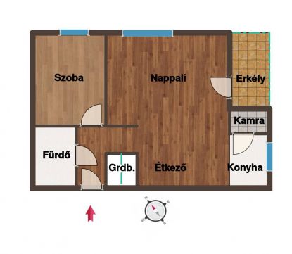 A nappali nagy ablakain egész nap árad be a fény, innen nyílik a hangulatos erkély, ahol kényelmesen kávézhatsz. A külön nyíló hálószoba csendes, a konyha jól felszerelt, és egy praktikus kamra is tartozik hozzá. A zuhanyzós fürdőszoba igényes, a lakás minden pontján érződik, hogy gondosan karbantartott otthonról van szó.