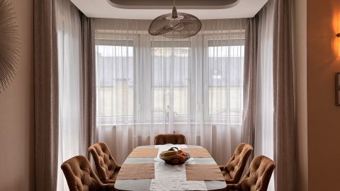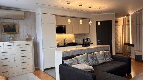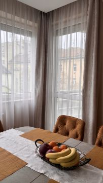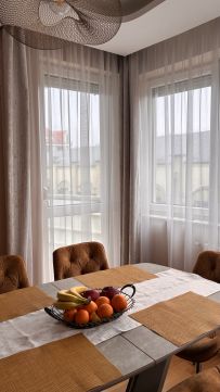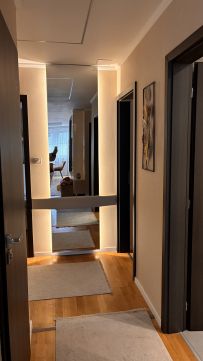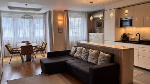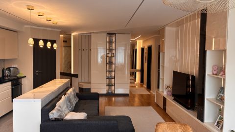 A lakás minden részletét elegancia jellemzi, a gondosan összeválogatott, igényes, modern elemek: tapéták, beépített bútorok, led lámpatestek, hangulati elemek, ledes fénycsíkok, álmennyezetek, függönyök kialakítása, hangolható világítás. Visszafogottsága révén minden korosztály számára ideális és harmonikus otthon lehet.