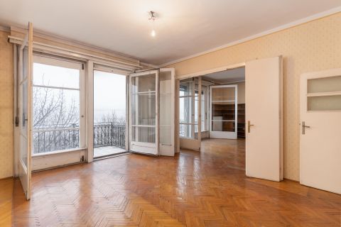 The property is in need of renovation, yet its excellent layout provides the perfect foundation to create a truly luxurious home. The space can easily be transformed into a spacious open-plan living room with Danube views, two bedrooms, two bathrooms, and a separate utility room.