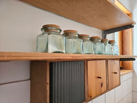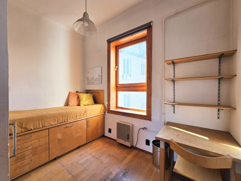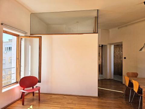 A lakást korábban két fiatal építész használta egyetemi éveik alatt, így a térkialakítás kreatív és praktikus megoldásokat tartalmaz.