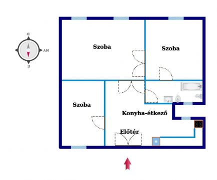 A 72 nm2-es lakás 2 hálószobából egy nappaliból, fürdőszobából és étkezős konyhából áll
