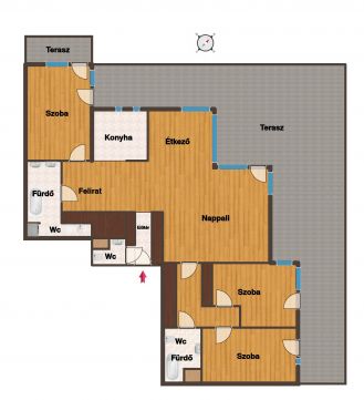 Hatalmas, napfényes nappali és 3 külön nyíló hálószoba mind közvetlen teraszkapcsolattal