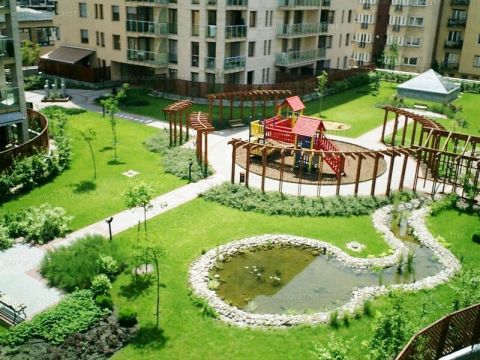 Gondozott, nyugodt belsőkert és pihenőterek