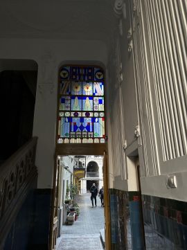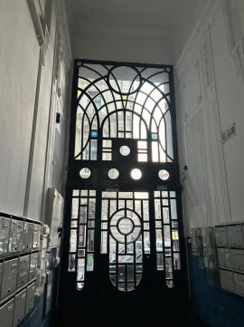 This elegant, early Secession-style historic building houses a 62 m², two-level apartment, ideal for those seeking the comfort and vibrancy of the city center. The entrance to the apartment is on the ground floor, separate from neighbors, leading into a beautiful vestibule decorated with painted glass windows.