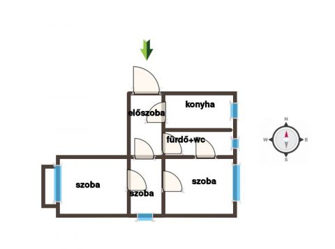A lakás praktikus elosztású: előszoba, konyha, fürdőszoba+WC, 2 külön nyíló szoba, valamint egy kis dolgozószoba, ami tökéletes akár otthoni munkához. A mindennapokat önálló, nagyméretű (~15 m2) tároló és a ház előtti ingyenes parkolási lehetőség teszi kényelmessé. Az ingatlan teher- és permentes.