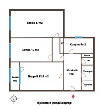 Első emeleti, 66 m2-es, 3 egész szobás, téliesített 4m2-es loggiás,