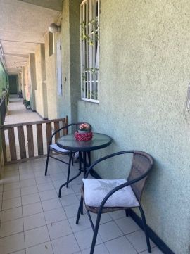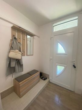 A bejárathoz elkerített kis teraszrész is tartozik, mely alkalmas reggeli kávéja elfogyasztására illetve teregetésre valamint tárolóként is funkcionál.