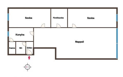 - Kényelmes elrendezés: 2 szoba + tágas nappali, konyha, kamra, fürdőszoba és külön WC ideális elosztás családoknak vagy pároknak.