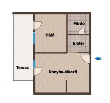 4 típusú lakás, 32 és 47 m² között, kulcsrakészen, beépített konyhával, minőségi burkolatokkal, zuhanyzóval, terasszal: