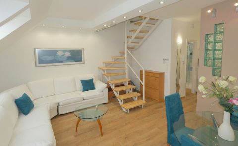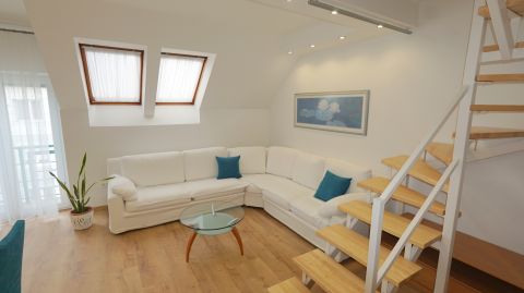 Zalaegerszeg belvárosában hosszútávra kiadó ez a III.emeleti belső kétszintes igényes felújított nappali+ 2 szobás 62 m²-es lakás!