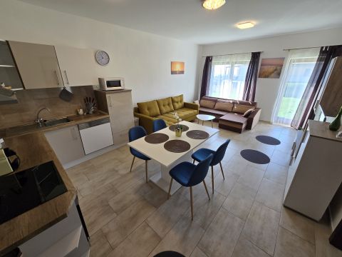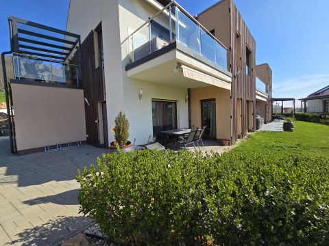 KIADÓ hosszabb távra Alsóörsön PANORÁMÁS, új lakóparkban egy 52 nm-s, 2 szobás, FÖLDSZINTI lakás.