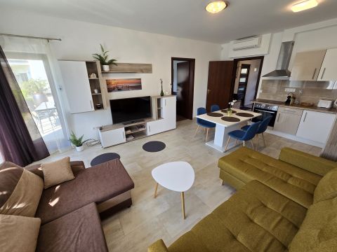 A lakás tágas, korszerű elrendezésű, igényesen kialakított, bútorozott, fedett teraszos,