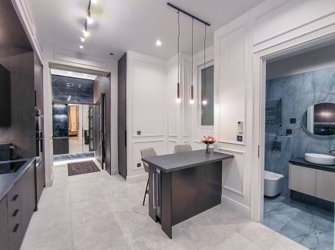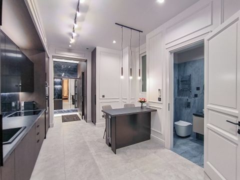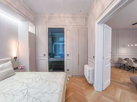 Az impozáns, 19. századi, liftes épület harmadik emeletén található lakás tágas nappalival, két elegáns hálószobával és két modern fürdőszobával rendelkezik.
