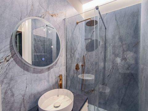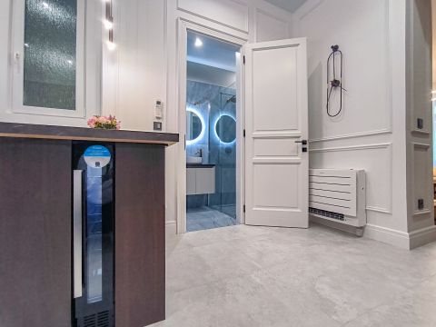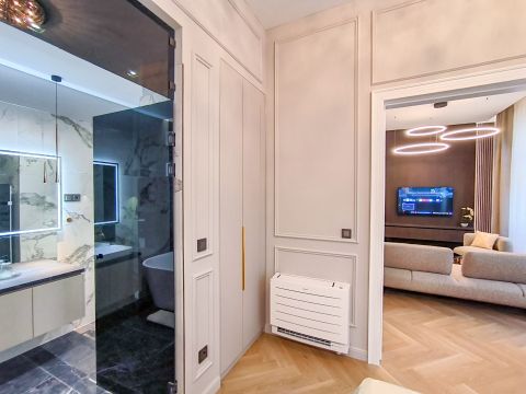 A lakás minden részlete a prémium minőséget tükrözi: 3 db Daikin hőszivattyú, hőszivattyús fűtés-hűtés, egyedi bútorok, design világítás, magas minőségű burkolatok és szaniterek, valamint elektromos árnyékolók teszik teljessé az összképet.