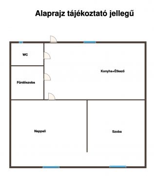 Elosztás: konyha + étkező, nappali, fürdőszoba, WC
