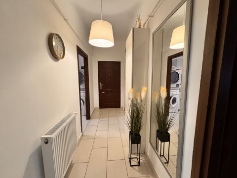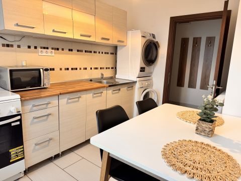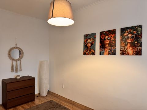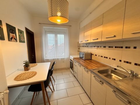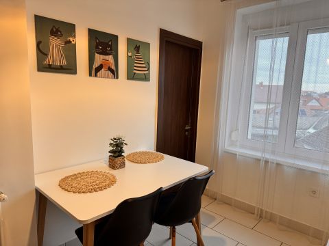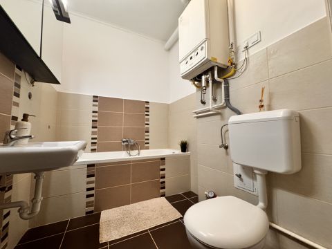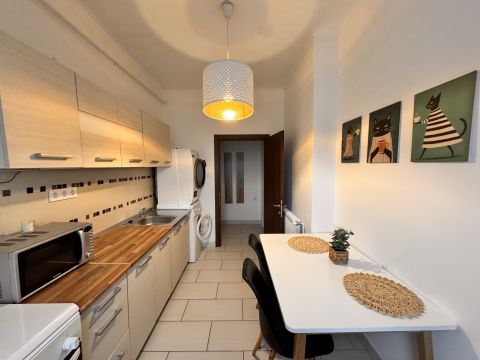 Eladó 55 m2-es, azonnal költözhető, bútorozott, két szobás, cirkófűtéses lakás a Dózsa utca és Platán sor sarkán.