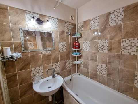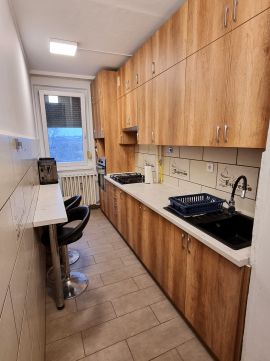 - Konyha: (6,5 m²) teljes körűen felújítva, elektromos sütővel, gáz főzőlappal, mosogatógéppel