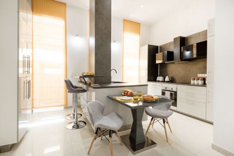 This 56 sqm modern, minimalist property is offered for sale in the historical center of the city, yet in a quiet and peaceful location. The unique design, premium materials, sophisticated color palette, and prime location all contribute to making this apartment a true gem. A serene oasis at the end of noisy days in today's fast-paced world.