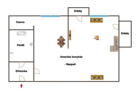 Különlegessége az ingatlannak, hogy 2 erkély veszi körbe, így a nap minden szakában élvezhető a kellemes napsütés.