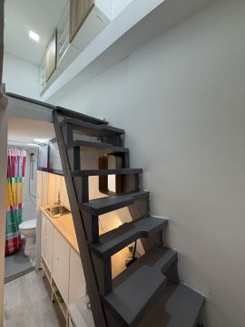 Bár a tér kicsi, a tervezés optimalizálása és intelligens megoldások alkalmazása miatt minden megtalálható benne, ami egy modern életmódhoz szükséges. A helyiségek elrendezése és a beépített tárolók maximális tágasságot engednek, miközben a lakás magához vonzza a természetes fényt, ami az otthoni időt kellemessé és egyedivé teszi.