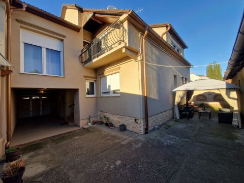 Baja belvárosában eladó hőszigetelt, felújított, 2 szintes, 206 m2-es sorház jellegű lakás külön épületben 1 szobás, fürdőszobás lakrésszel, fűtött garázzsal, műhellyel, kerttel.