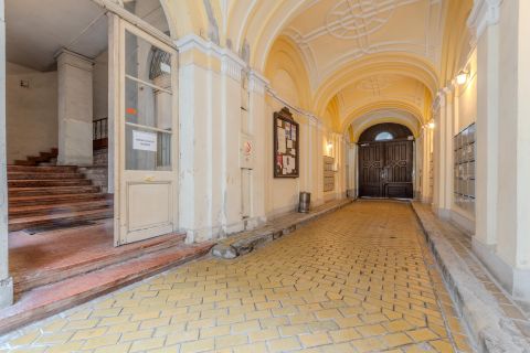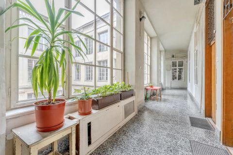 We are offering this 85 sqm, street-facing, bright and quiet apartment on the second floor of a romantic mezzanine-style, 3-story historic building from 1850, with elevator and inner courtyard.