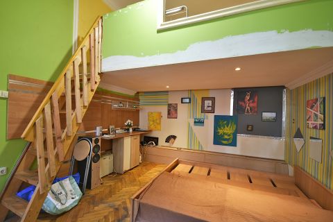 A közel 4 méteres (3,75) belmagasság lehetőséget ad galéria kialakítására, amely jelentősen növelheti a használható életteret. A lakás jelenlegi állapotában felújítandó, így új tulajdonosa saját elképzelései szerint alakíthatja ki az ingatlant.