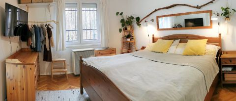 A szobák szúnyoghálóval, a hálószoba redőnnyel felszerelt