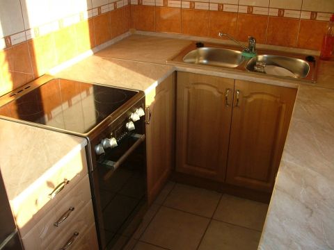 -a konyhában egy korábbi felújítás során U alakú szekrény beépítése