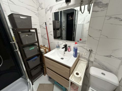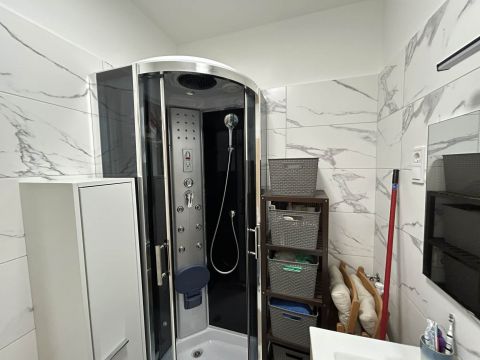 A fürdőszobában WC és hidromasszázs zuhanykabin kapott helyet.