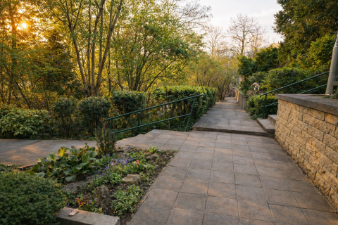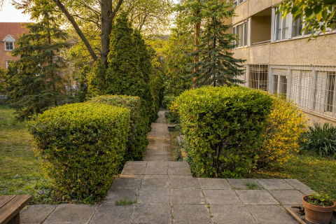 A társasházat mindkét oldalról kert határolja, az ablakok nagyrésze a belső kertre néz. A lakók számára nagy érték a ház saját használatú, zárt játszótere, amely biztonságos kikapcsolódást nyújt a társasházban élőknek.