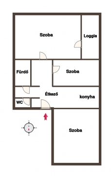 A lakás nettó 69 négyzetméterén három különnyíló szoba, egy jó állapotú konyha, fürdő és külön WC található. Az egyik szobából közvetlen kijárás nyílik egy 5,5 m²-es loggiára. A tárolást a pincében található saját, 4,5 m²-es tároló könnyíti meg.