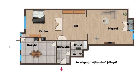 Az ingatlan elrendezése kiváló: egy tágas, napfényben úszó nappali, egy kényelmes hálószoba, egy különálló, jól felszerelhető konyha, valamint egy igényes fürdőszoba szolgálja a lakók kényelmét. A nagy méretű ablakoknak köszönhetően a lakás rendkívül világos, atmoszférája pedig kifejezetten barátságos és otthonos.