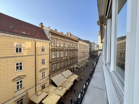 Budapest egyik legpatinásabb és legpezsgőbb sétálóutcájában, a méltán közkedvelt Váci utcában kínálunk bérlésre egy 83 nm-es, elegáns, erkélyes lakást egy rendezett, lifttel ellátott épület harmadik emeletén.