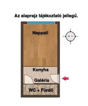 A lakás kompakt, mégis jól élhető: a galérián külön hálórész került kialakításra, míg az alsó szinten nappali és konyha található. A kialakítás modern, praktikus és kifejezetten a mai igényekhez igazodik.