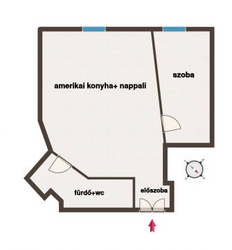 A lakás két szobás, amerikai konyhás nappali + hálószoba elrendezésű, mindkét helyiség utcai nézetű. A lakás tágas, jó beosztású és rendkívül világos, így kellemes, otthonos hangulatot áraszt.