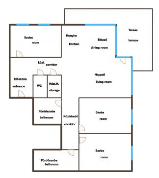 Széparányú, levegős terek, minden szobában és a közlekedőkben hatalmas, beépített szekrényekkel.